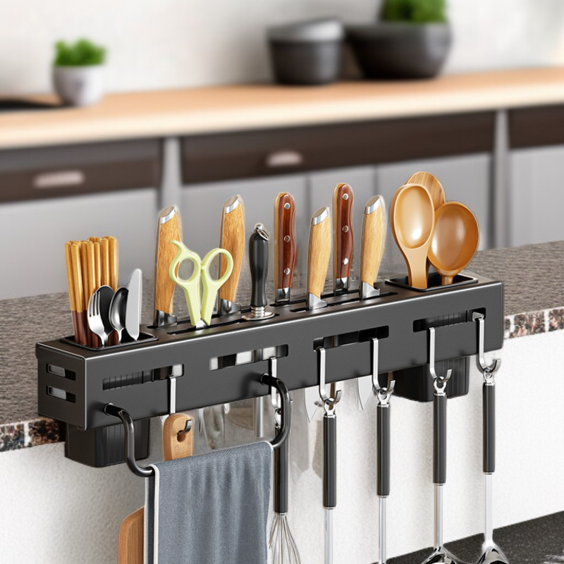 ● 벽걸이형 디자인으로 주방 공간을 효율적으로 활용할 수 있어 좁은 주방에도 안성맞춤입니다. ● 칼과 젓가락을 한 번에 수납할 수 있는 일체형 구조로, 깔끔하고 정돈된 주방을 연출할 수 있습니다. ● 튼튼한 소재와 견고한 설계로 오랜 사용에도 변형이나 흔들림 없이 안전하게 사용할 수 있습니다. ● 통풍이 잘 되는 구조로 칼과 젓가락을 위생적으로 보관할 수 있어 위생 걱정 없이 사용할 수 있습니다. ● 간편한 설치 방법으로 누구나 손쉽게 벽에 부착할 수 있어 설치 스트레스 없이 바로 사용할 수 있습니다.