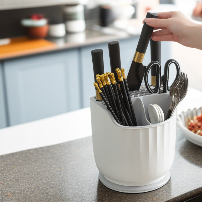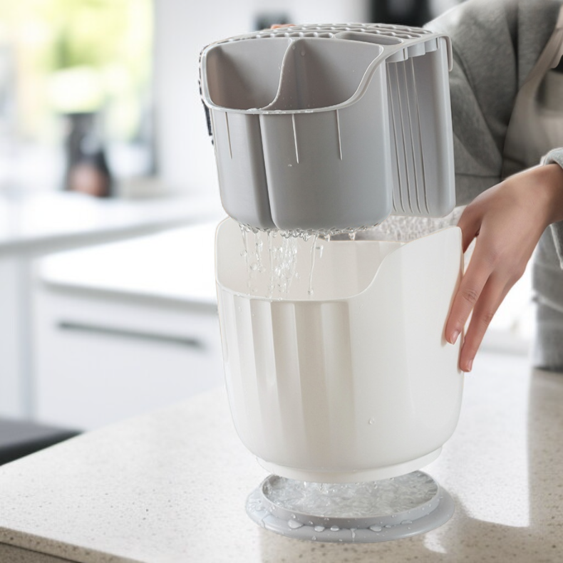● 넉넉한 수납 공간으로 다양한 주방 식기와 수저, 젓가락, 조리도구까지 깔끔하게 정리할 수 있어 주방이 한층 더 쾌적해집니다. ● 통풍이 잘 되는 디자인으로 물기가 빠르게 배수되어 식기 건조가 위생적으로 이루어지며, 곰팡이와 세균 걱정 없이 안심 사용 가능합니다. ● 튼튼한 소재로 제작되어 오랜 기간 변형이나 파손 없이 사용할 수 있고, 청소도 간편해 관리가 매우 편리합니다. ● 심플하고 모던한 디자인으로 어떤 주방 인테리어에도 잘 어울리며, 공간 활용도가 높아 작은 주방에도 부담 없이 사용 가능합니다. ● 분리형 수저통이 포함되어 있어 세척과 관리가 쉬우며, 다양한 용도로 활용 가능해 실용성이 뛰어납니다.